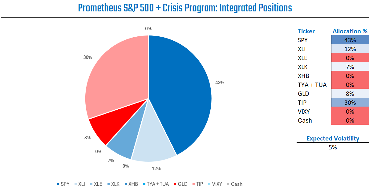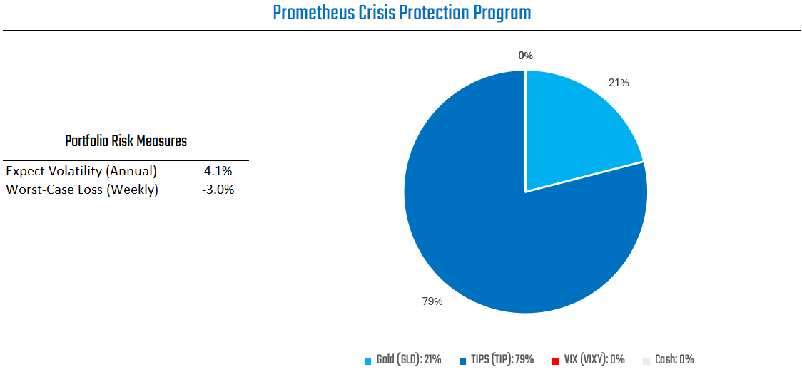 Nonetheless, gold and TIPS offer attractive expected returns during periods of elevated nominal GDP, easy monetary conditions, and above target inflation. As such, the Prometheus Crisis Protection Program is allocated as follows: