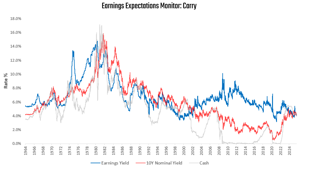 Despite these positive dynamics, expected returns for equity markets remain compressed versus other assets. Recall, today, cash offers essentially the same expected returns as stocks and bonds, with none of the risk: