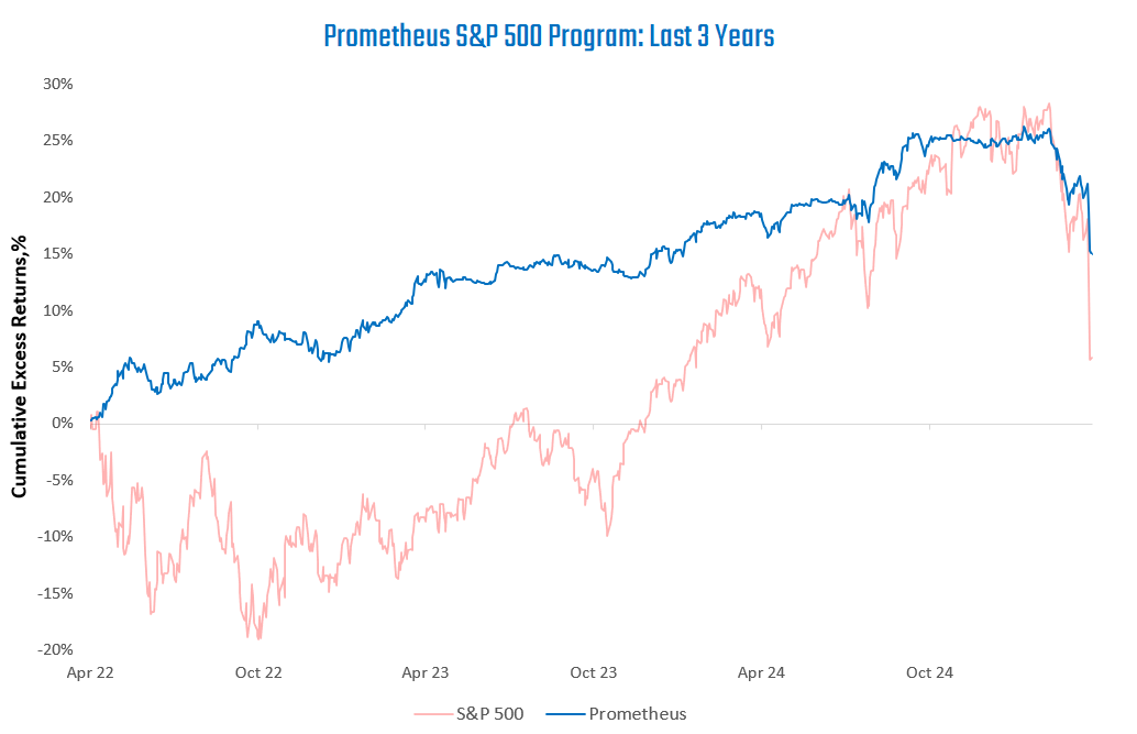 We begin with the Prometheus S&P 500 Program. The Prometheus S&P 500 Program seeks to outperform the S&P 500 over a full investment cycle. We define a full investment cycle as a period of time where markets have experienced bull and bear markets with a generalized upward drift.