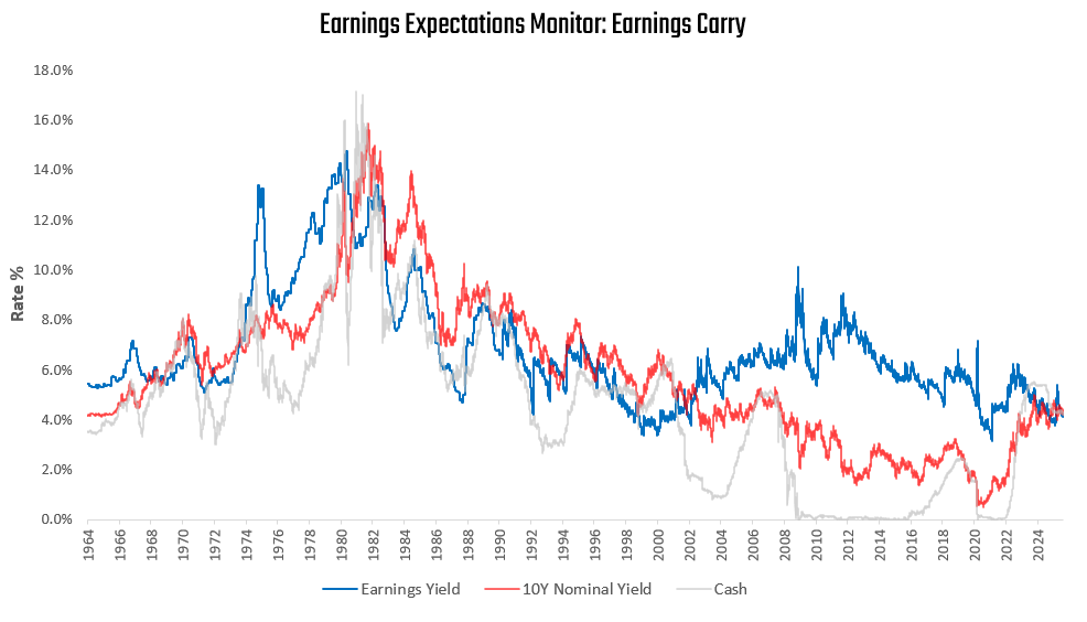 Despite these positive dynamics, expected returns for equity markets remain compressed versus other assets. Recall, today, cash offers essentially the same expected returns as stocks and bonds, with none of the risk: