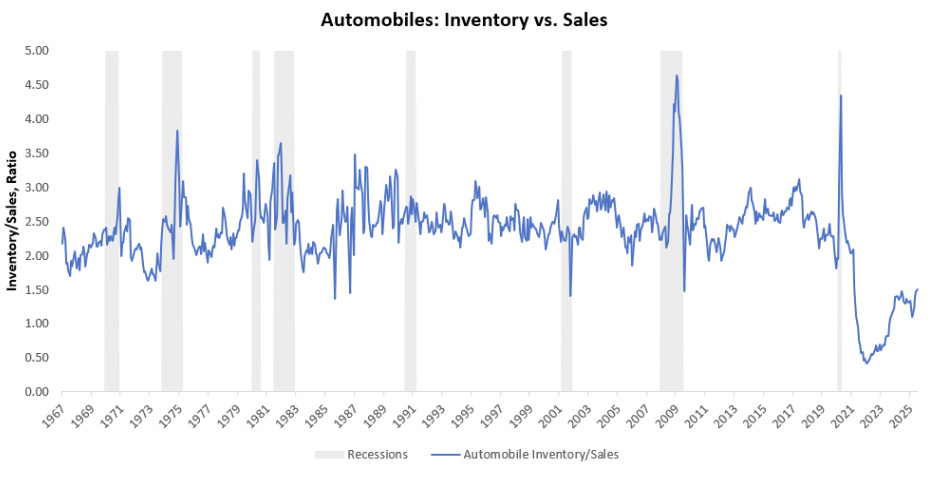 Under these nominal growth dynamics, inflation remains above the Fed’s comfort zone, though disinflationary forces are building in housing and energy. Shelter inflation continues to slow alongside weak housing demand, while energy prices are stabilizing as inventories normalize.