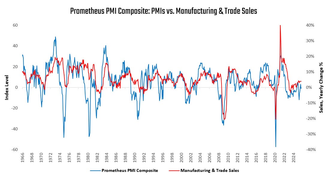 Amidst this backdrop, the Prometheus Multi-Strategy Program has been steadily re-adding risk and rebalancing exposures across equities, bonds, and commodities. The program’s posture is once again long growth and short duration—consistent with a reflationary shift: