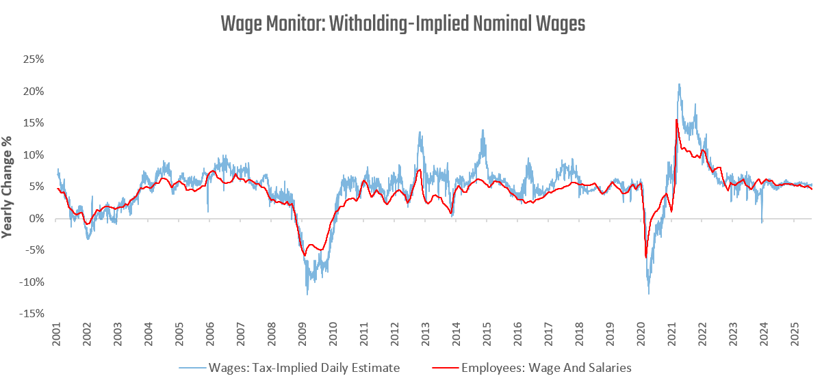 We begin with high-level growth. Our estimates for aggregate nominal employee incomes remain strong. We visualize this below: