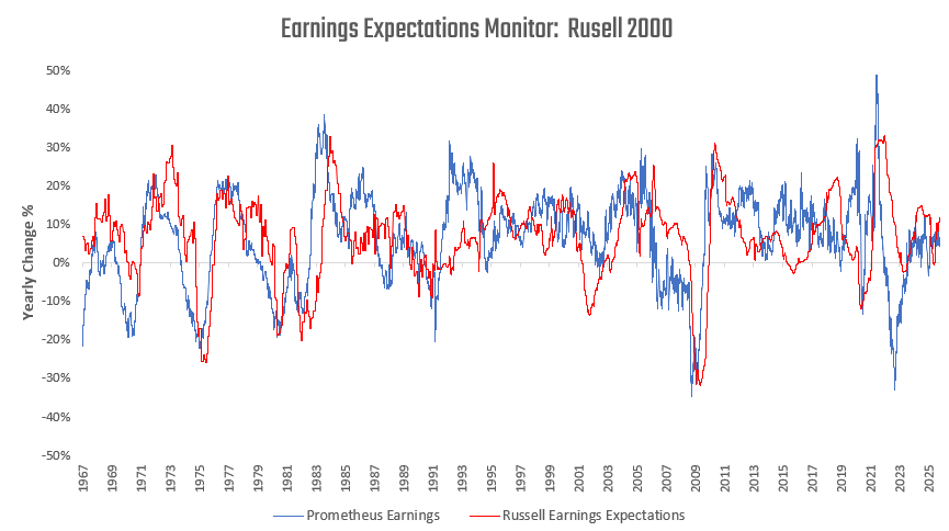 While our measures don’t point to contraction from Russell 2000 earnings, they do point to a stabilizing pace of growth and perhaps some mean reversion ahead for earnings expectations.