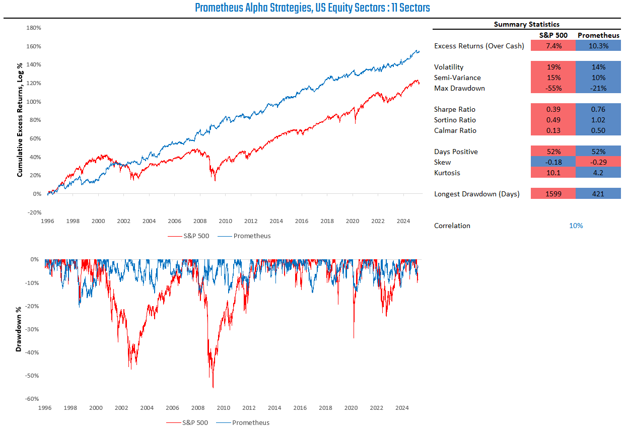 Thus far, we have shared our views on beta management. We now turn to alpha generation. For this purpose, we turn to our Sector Selection Program. The Prometheus Sector Selection Program seeks to deliver absolute returns, going long and short equity sectors using our proprietary macro measures of value, fundamentals, trend, and mean reversion. The program trades the following 11 S&P 500 Sectors: