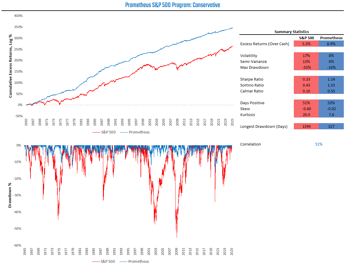 We begin with the Prometheus S&P 500 Program. The Prometheus S&P 500 Program seeks to outperform the S&P 500 over a full investment cycle. We define a full investment cycle as a period of time where markets have experienced bull and bear markets with a generalized upward drift.