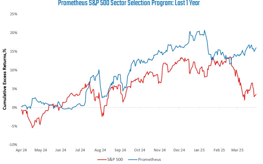 We will release our Prometheus S&P 500 program this month. However, markets are moving quickly, and we wanted to share insights from our signals to help investors navigate risk during these challenging times. Additionally, we offer insights from our Prometheus Sector Selection Program in this note.