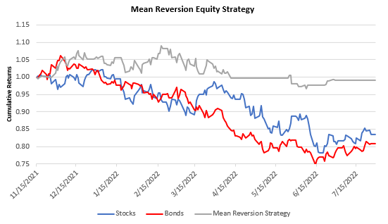 The moves in treasuries on a year-to-date basis have potentiated future returns on Treasuries. These losses have potentiated future returns, but they don’t necessarily catalyze them. However, weaker growth will likely be the primary driver of equity and bond returns as the inflation impulse fades. This dynamic creates increased “choppiness” in markets, as stocks and bonds have opposing biases. When growth becomes the primary driver of markets & stock-bond correlations are negative, we start to see an increasing amount of up-and-down movement on a daily and weekly basis in stocks as investors move to rebalance their exposures. Shorting gets more tactical in this environment. We show a simple strategy based on the phenomenon below. After sitting out the market for a long period of time, the strategy once again received signals to start trading yesterday:
