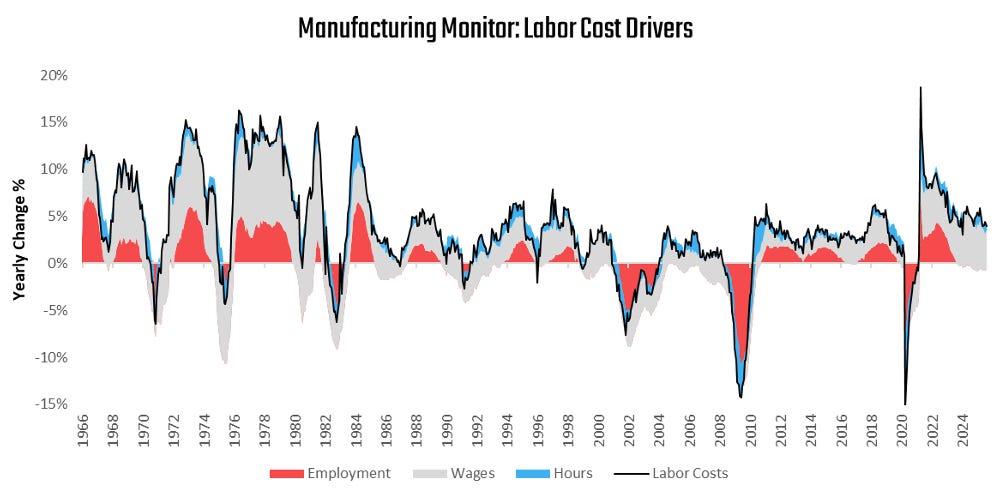 We have seen this in the broader manufacturing sector as well. However, manufacturing wages continue to rise despite falling employment: