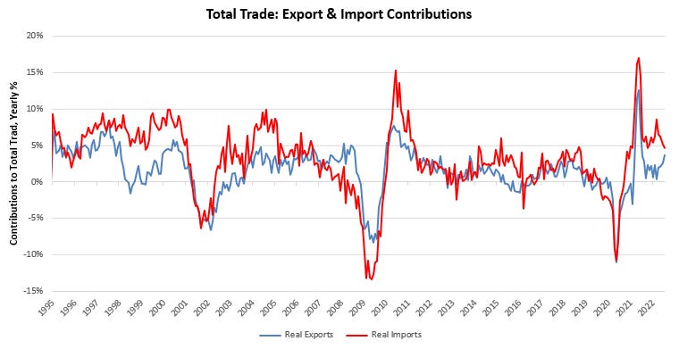 The labor market strength illustrated above will allow the Fed further room to tighten policy; however, the eventual contraction in the labor force will likely create self-reinforcing pressures lower in real incomes and spending, while inflation could remain stubborn.