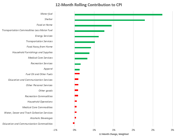 The divergence between our gauges and CPI is now significant to the extent we expect to see some cooling in CPI. The areas of CPI most exposed to slowdown pressures are those currently leading the pack: