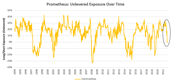 Overall, we remain in a regime of heightened inflationary pressures; however, these forces are now more negative for equities & credit than they are positive for inflation assets. With nominal demand likely to continue on its downwards trajectory, we see far fewer opportunities in commodities beta than earlier this year; however, our signals continue to maintain exposure to the energy complex.