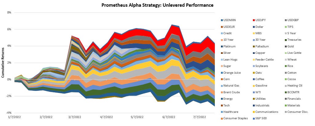 Our systems continue to tell us that tightening liquidity remains in full effect, and our asset allocations reflect these pressures. This week has seen markets move contrary to our positioning. However, we expect strategies to continue to perform well through the market cycle. We showcase our Alpha Strategy year-to-date performance, along with our current positioning below: