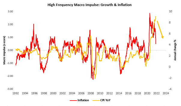 iii. Inflation remains elevated, but the inflation impulse has receded. High inflation continues to pressure the cost structure of companies and, thereby, equities and credit. However, our proprietary gauges are pointing to receding accelerations in inflationary pressures.