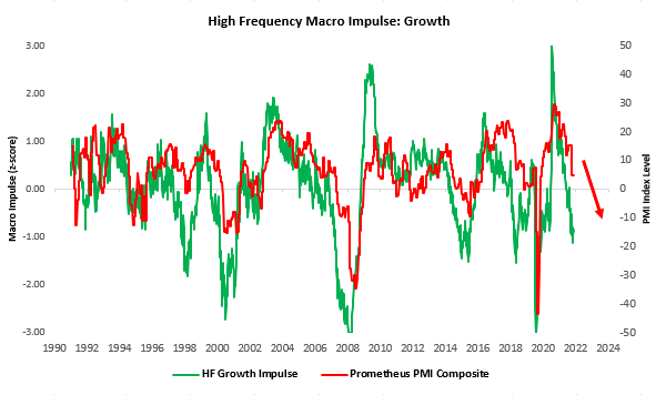This data is particularly concerning as the largest slowdown has come from the index's new orders component, which is typically considered a leading indicator for future demand. Furthermore, our high-frequency impulse measure suggests there is more deceleration to come: