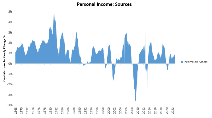 Next, as previously alluded to, we show how income on assets continues to contribute to income growth, now contributing 1% of the total 5% growth in nominal income: