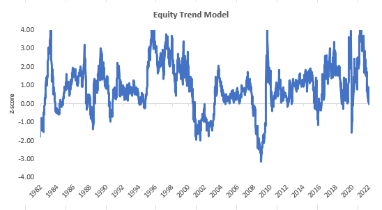 5 out of 11 Equity Sectors are now in a negative according to our trend models. Our market regime signal has picked up on this, with markets now pricing (+) G (-) I with a 0% probability. Long Equity positions show high noise to signal and should be sized minimally.