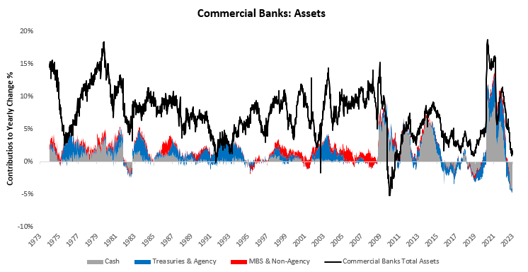 However, these impacts were offset by declines in both reserve balances/cash (through QT) and Treasury, Agency, and MBS reductions: