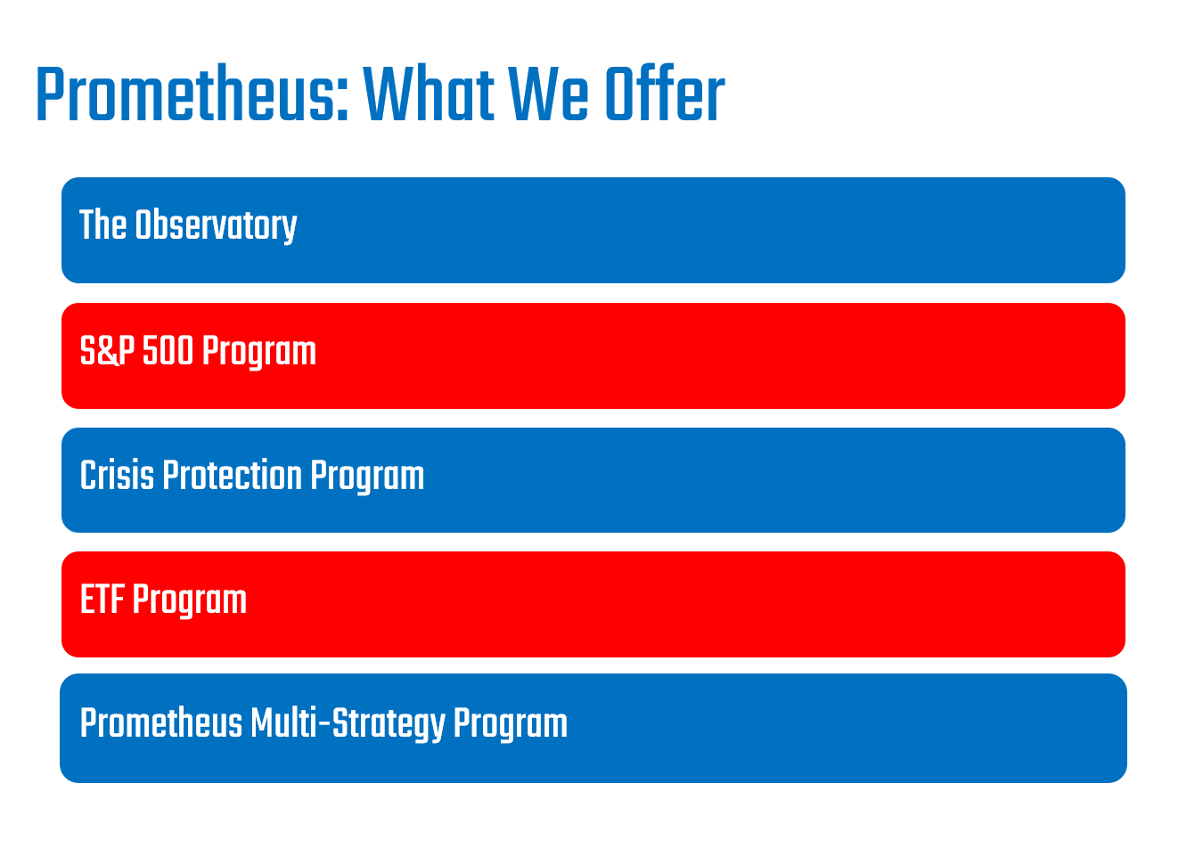 Prometheus ETF Program: The ETF Program is an investment program that combines active macro alpha and strict risk control, all in an easy-to-follow solution for individual investors. This is a pure macro timing program, benchmarked to cash, with the objective of getting active during periods of macroeconomic volatility.