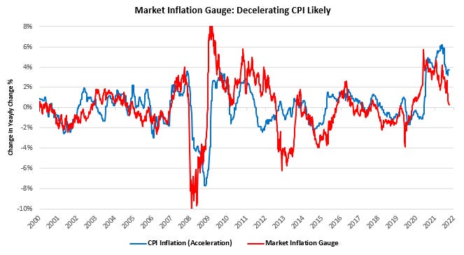Our market inflation gauge has generally been a strong predictor of inflation acceleration and tells us the path is likely lower.