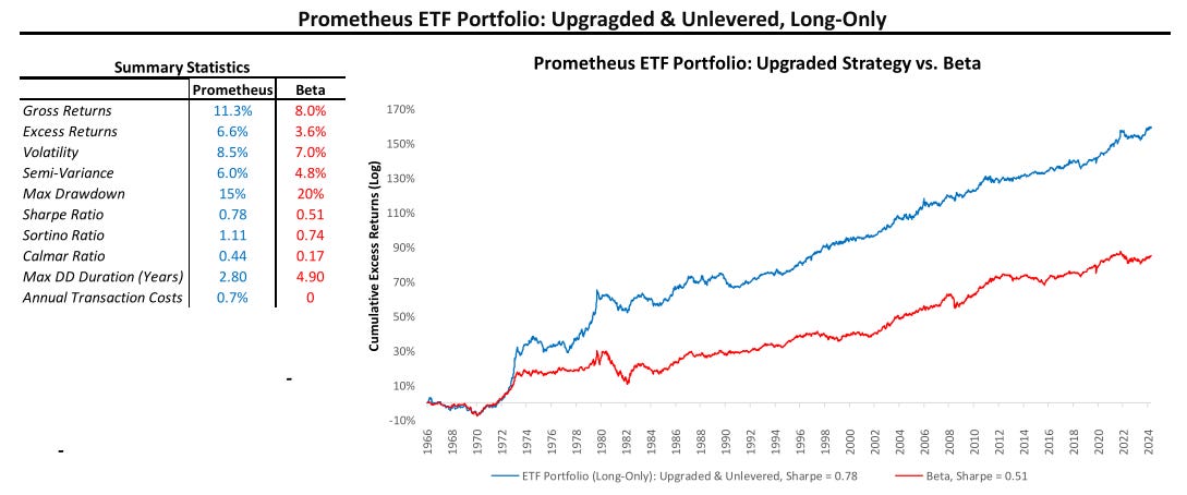 For those unfamiliar: The Prometheus ETF Portfolio aims to allow everyday investors to access an investment solution that combines active macro alpha, passive beta, and strict risk control, all in an easy-to-follow, low-turnover solution. We aim to achieve strong risk-adjusted returns relative to cash, with limited capital drawdowns in depth and duration. We do this in a highly accessible package, which rotates between five highly liquid ETFs, readily available to any investor with a brokerage account. You can sign up for it here: