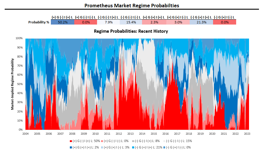 For a further understanding of how economic dynamics have been priced into markets, we show our tracking of market-implied macroeconomic regime probabilities below, which reflect the aforementioned dynamics: