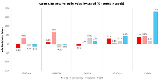 Let's dive into the data driving our assessment before moving on to positioning. We begin by examining the path of asset price returns over the last week: