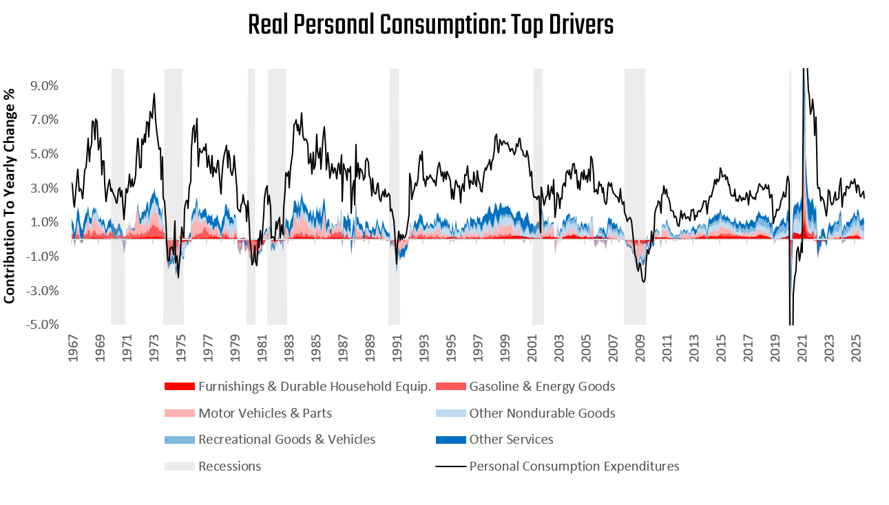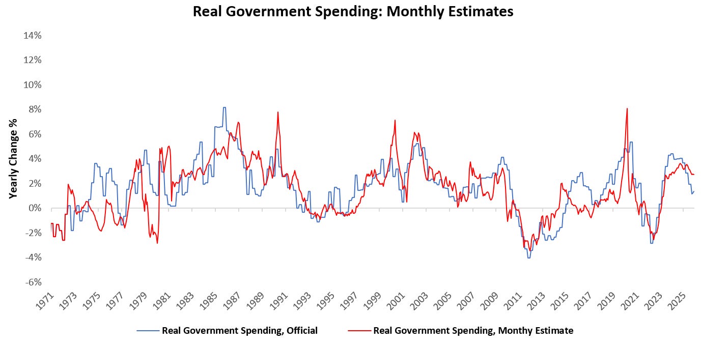 Overall, government spending remains a small part of growth and will not meaningfully move real GDP, as ever. That does not mean the government does not have a meaningful impact on macro conditions—just that it does not move growth directly and has much more significant impacts on balance sheet conditions than on growth conditions. You can read our views on the same here: