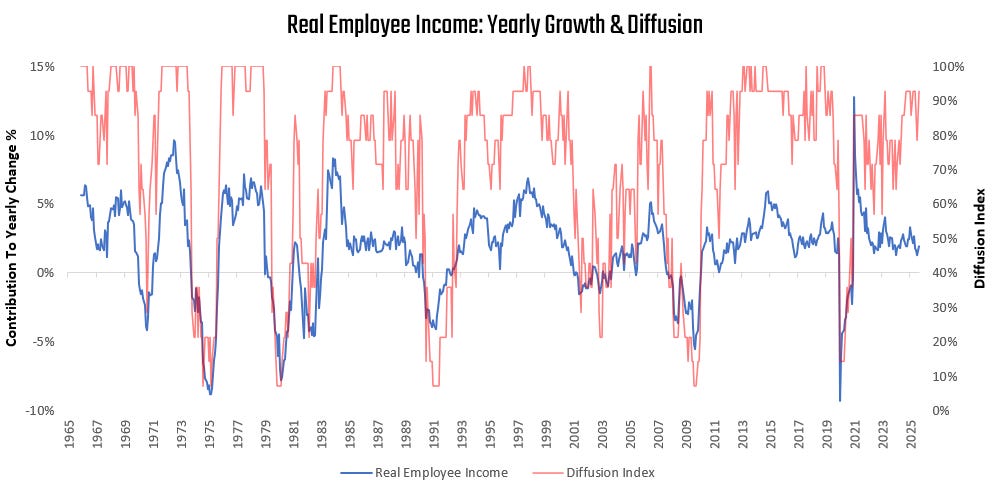 This income growth is still broad-based as well, with 90% of sectors seeing positive real growth: